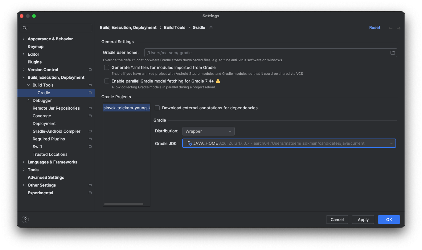 Android apps and KMP code are built with Gradle. The Gradle Wrapper needs JDK, and it looks for it via the JAVA_HOME environment variable. This applies to builds started from Android Studio, Xcode, and the terminal. Ideally, all tools (Android Studio, Xcode, terminal) use the same JDK (or at least the same major version).