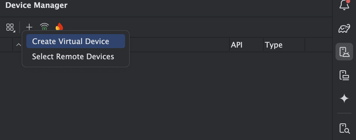 - Complete the wizard. The emulator will appear in the list of available devices.