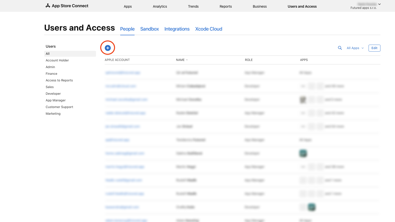 ops@futured.appuser to customer's App Store Connect accountSteps