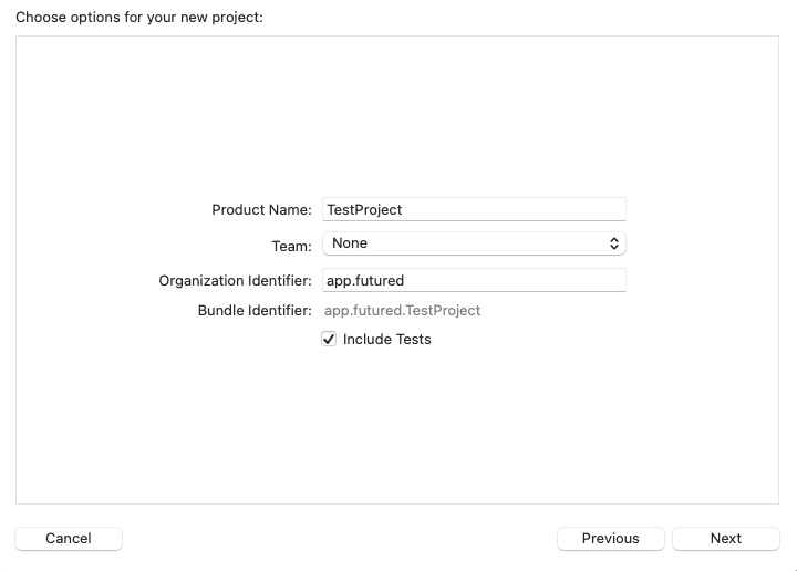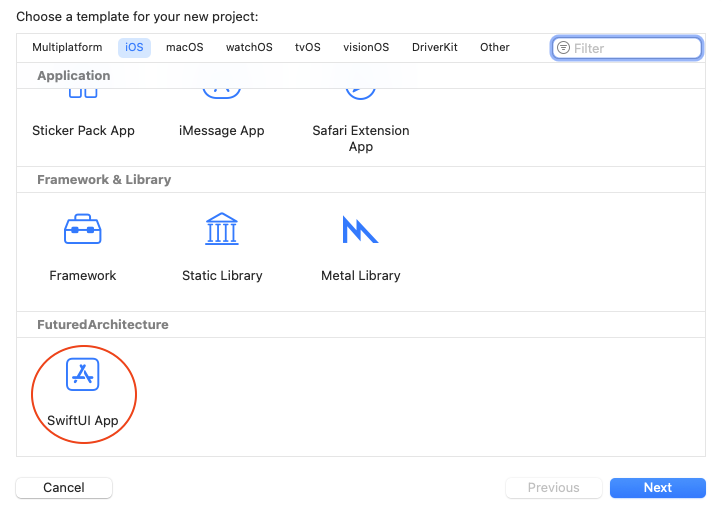 iOStab andSwiftUI AppfromFuturedArchitectureand clickNextbutton -
