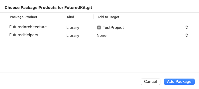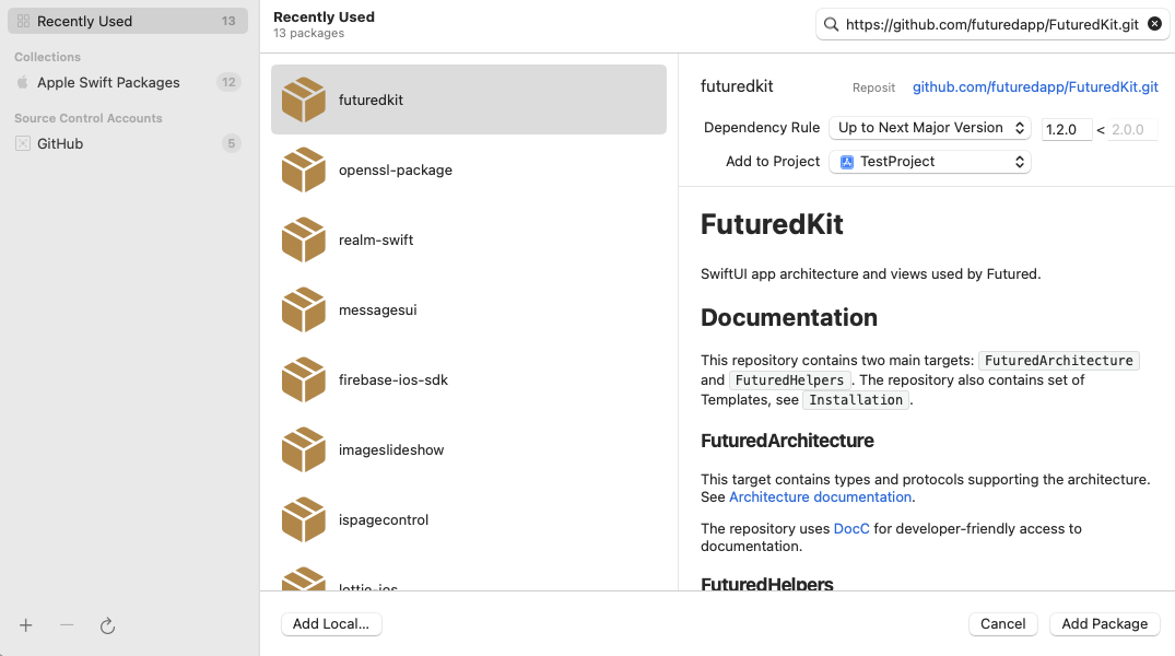 FuturedKitpackage dependency - https://github.com/futuredapp/FuturedKit.git -