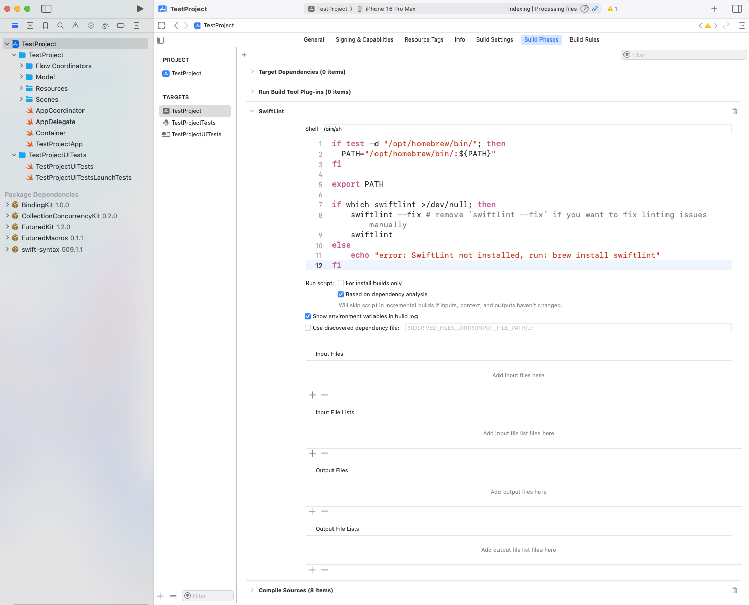 SwiftLintand move it beforeCompile sourcesphase - paste script bellow