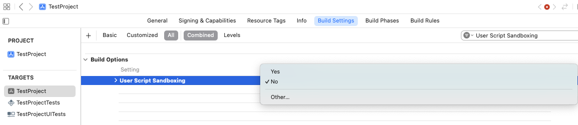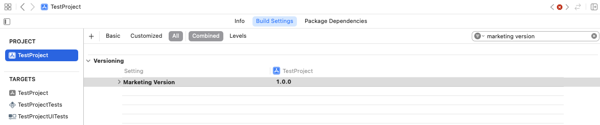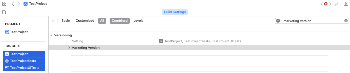 Marketing Versionvalue by pressingDeletebutton on keyboard (Marketing Versiontext will change from bold to normal) - select project and fill