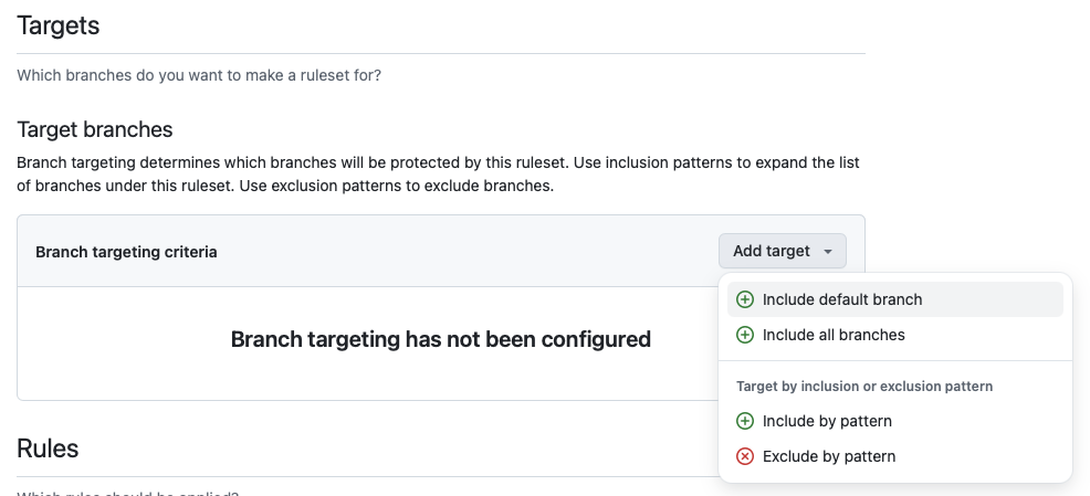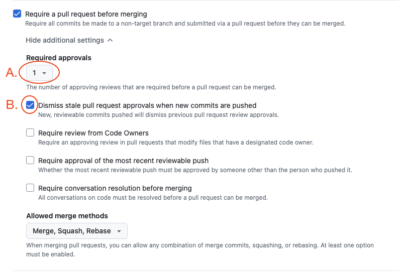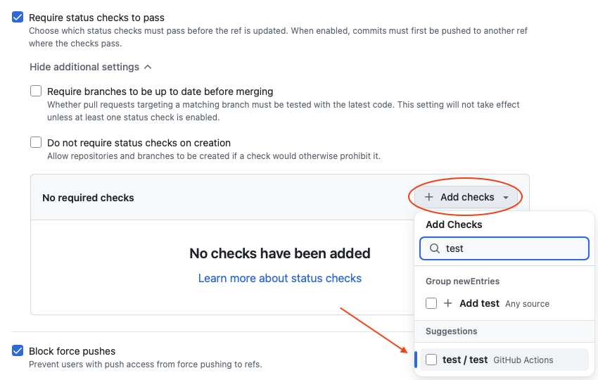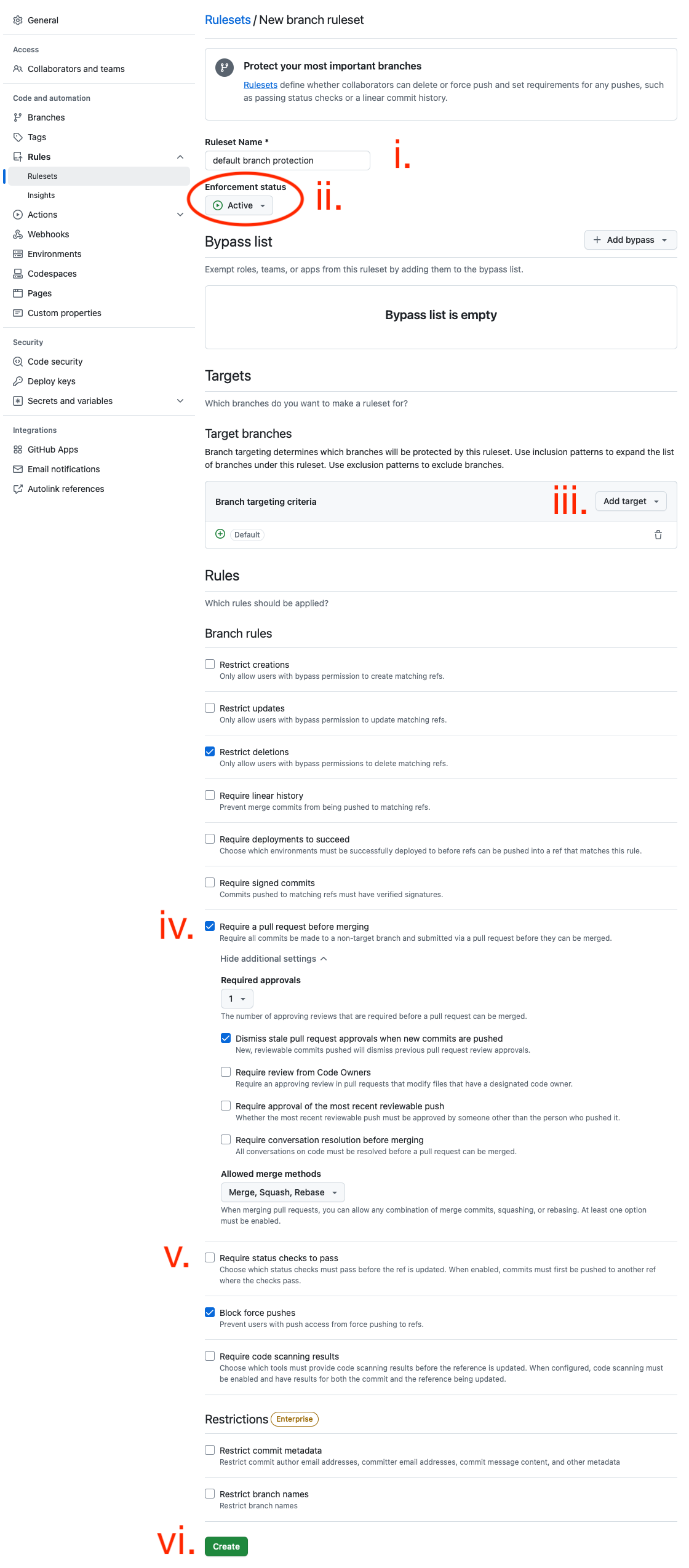 Require status checks to passunchecked for the moment (we'll set it up later)- don't forget to add the